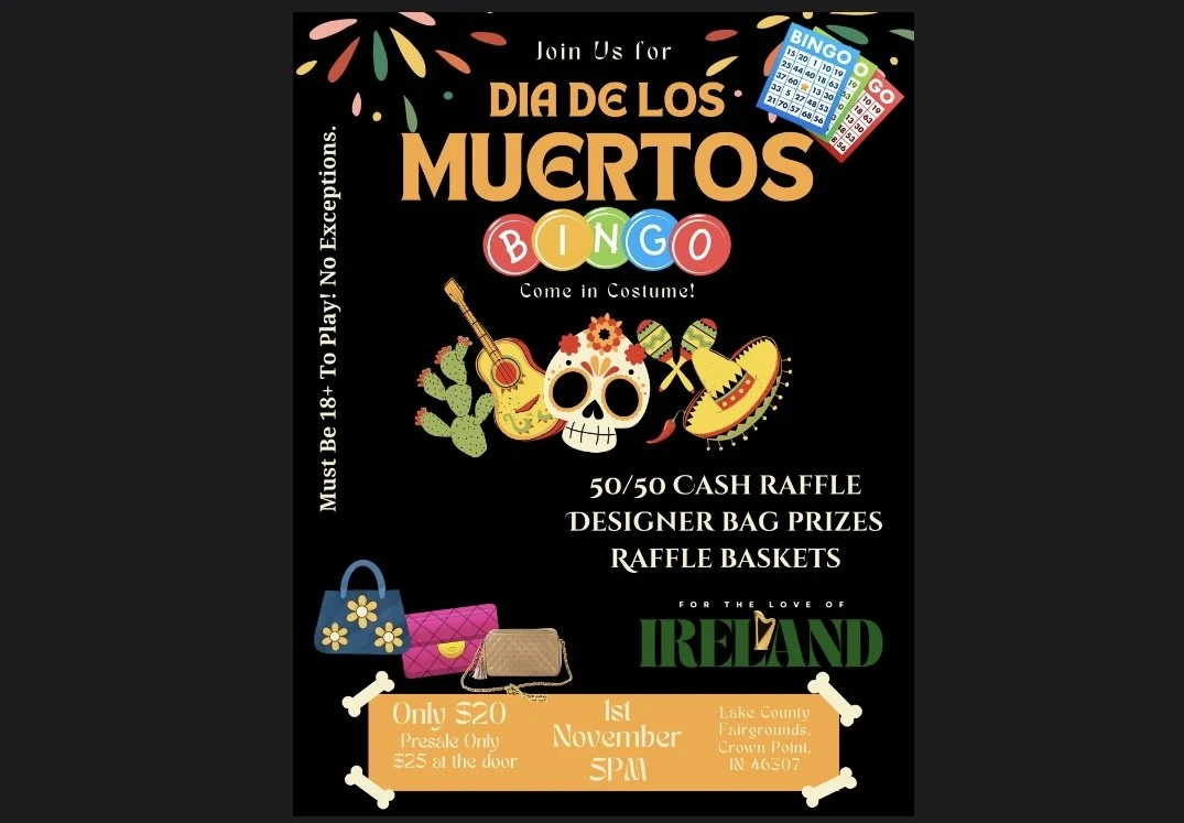 Join Us for a Fun-Filled Bingo Night! Win Designer Handbags, Raffle Baskets, and 50/50 Prizes While Supporting 'For the Love of Ireland'—Enjoy Light Snacks and a Card-Only Cash Bar! Visit https://givebutter.com/6kIbGx to purchase tickets!!